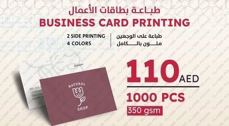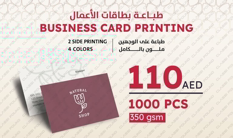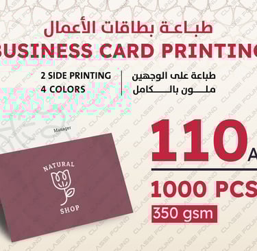 ادفع 110درهم إماراتي و اطبع 1000 بزنس كارد بالمواصفات التالية: