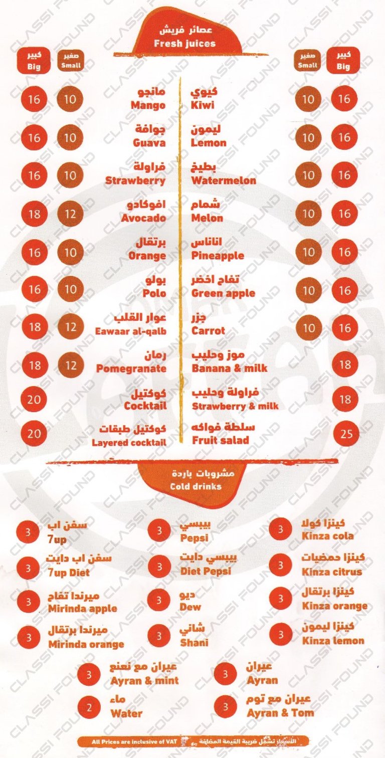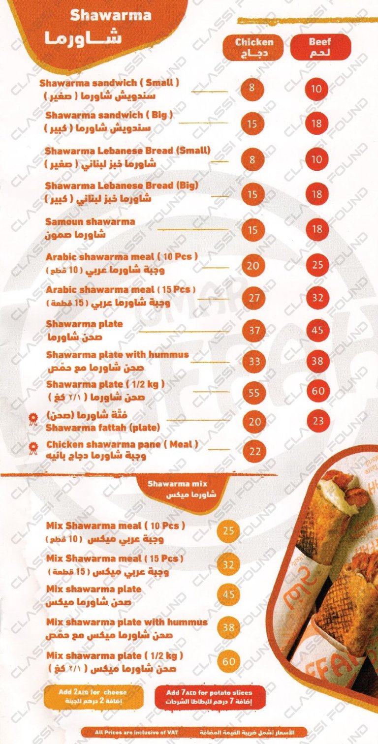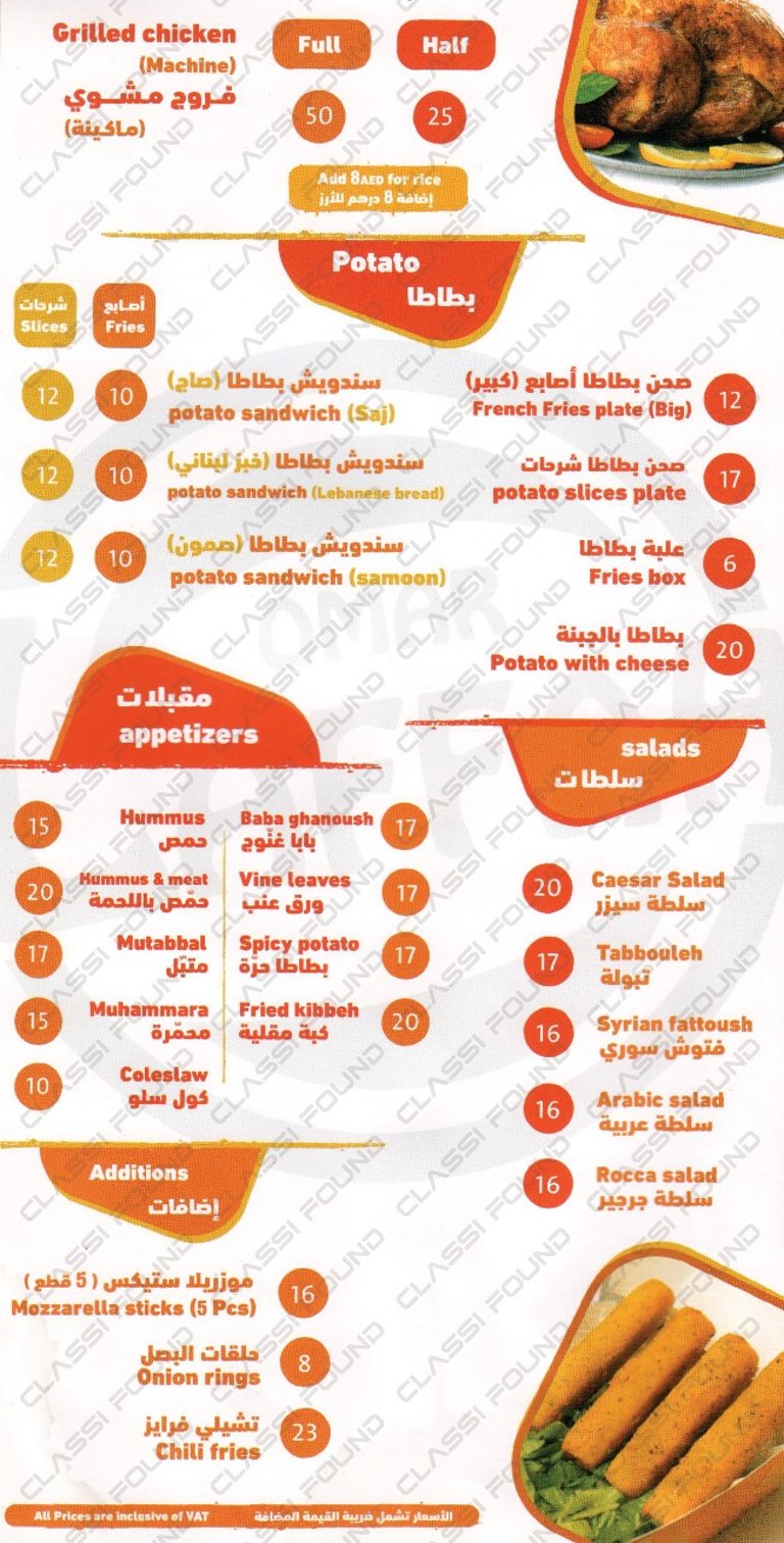 تصفح وحمل مينيو مطعم عمر اللفاح في الشارقة